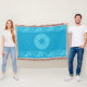 Bordure de noeud celtique travail de conception de poisson entrelacé dans les tons bleu, avec un grand médaillon circulaire de conception de poisson au centre