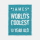10e anniversaire Le G20 Turquoise Turquoise et blanc le plus vieux du monde de 10 ans. C'est l'anniversaire...FÊTONS ! Ce design avec ses étoiles grunge et texte à la mode et un spot personnalisé avec un nom et une année d'anniversaire est une façon amusante de commencer la fête!