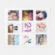 Un cadeau pour le 21ème anniversaire d'une femme, célébrant sa vie avec un collage de 8 de vos photos. Modèles pour un nom, 21 ans et une date. Date de naissance ou date d'anniversaire. Lettres de couleur rose et violet. Arrière - plan de couleur blanche.