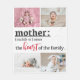 Cette jolie couverture en toison a une définition de dictionnaire du mot mère, le coeur de la famille, et est personnalisable avec 4 de vos photos de famille préférées, faisant le cadeau parfait pour n'importe quelle maman pour les jours de mère, anniversaires, Noël, ou toute autre occasion importante.