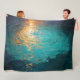 Couverture Polaire Abstract Aqua Waves with Golden Sunlight