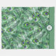 Des images de plumes paon dans les tons bleu vert, or et bleu roi sont superposées et regroupées pour former un motif intéressant sur cette couverture en toison. Votre monogramme se trouve en haut dans une bannière en cercle blanc double doublée en bleu vert et turquoise assorti, et placé à mi-chemin sur une bordure en vert gris uni assortie.