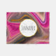 Couverture au design super et abstrait. Les couleurs rose et noire se mélangent et se mélangent dans un mouvement tourbillonnant. Saupoudrer de parties scintillant en faux or entre les couches. Un cadre en cercle blanc avec une fausse bordure en feuille d'or, superposé avec votre initiale et votre nom monogramme personnalisés à l'intérieur.