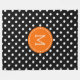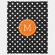 Elégant motif géométrique polkadot blanc sur couleur arrière - plan noir personnalisable. Accent orange avec monogramme personnalisable.
