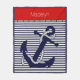 Belle ancre contemporaine de navire, sur un motif classique et chic bleu marine et blanc rayures. Partir avec une corde blanche, avec la place de personnaliser ou de customiser avec le nom, les initiales ou le monogramme de votre choix, ou toute sorte d'expression nautique comme "Ship Ahoy", "Sail Away", "Ancres Aweigh", ou "Bon Voyage". Créé pour le capitaine, amoureux des vacances et de l'été. Pour ceux qui aiment décorer leur chambre de maître ou d'enfants, la crèche, le séjour ou la chambre de famille, la grotte de femme ou d'homme, dortoir de collège, condo, studio ou appartement, maison de plage, chalet de campagne, cabine en rondins, RV ou camping, bateau ou yacht, maison de vacances en lac ou en rivière, ou voiture.