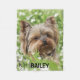 This adorable pet blanket showcases a photo of your beloved dog, along with their name printed below. It's perfect for any dog lover! Complementary items are also available, making it a fantastic gift option. To customize the blanket, simply click "Personalize This Design," upload your photo, and enter the necessary information. Zazzle will take care of the rest!