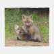 Deux trousses de renard rouge se partagent un moment juste devant leur tanière.