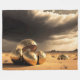 A mysterious sci-fi desert scene featuring monumental golden alien relics half-buried in endless sand dunes. Under a dramatic stormy sky, smooth metallic forms with intricate details suggest remnants of a forgotten civilization. A cinematic surreal artwork that blends science fiction, symbolism, and futuristic atmosphere—perfect for modern interiors and bold statement wall art.