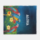 Couverture Polaire Aloha oiseaux perroquets palmiers bleus fleurs feu