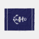 Ancrage marin bleu et blanc de la Marine et lignes Blanche polaire. Cette couverture en toison affiche une ancre vintage blanche, un cadre avec le nom et les lignes.