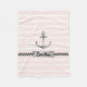 Une couverture en toison de fille avec ancre en aquarelle grise sur un arrière - plan rayé rose clair et blanc. Vous pouvez également personnaliser la conception avec du texte personnalisé sous l'ancrage.