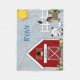Une jolie couverture en toison pour un baby shower, un nouveau bébé, un cadeau de Noël ou d'anniversaire. Grosse grange rouge avec zone pour écrire la date ou le nom. Bright Sun brille sur toutes les créatures heureuses dans la cour de la grange. Ajoutez un monogramme, un nom ou des initiales si vous le souhaitez.