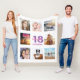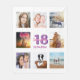 Un cadeau pour le 18ème anniversaire d'une fille (ou tout âge), célébrant sa vie avec un collage de 8 de vos photos. Modèles pour un nom, 18 ans et une date. Date de naissance ou date d'anniversaire. Lettres de couleur rose et violet. Arrière - plan de couleur blanche.
