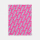 Une couverture en toison avec un nom personnalisé dans une police en caractères bleu aqua sur un arrière - plan rose chaud. Design audacieux et coloré.