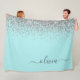 Couverture Polaire Aqua Bleu Turquoise Argent Paillettes Monogramme