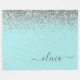 Couverture à capuchon en molleton à monogramme et initiale personnalisable avec écriture cursive à paillettes turquoise et argent. C'est le cadeau idéal pour un anniversaire sweet 16, un mariage, une fête de fiançailles, un anniversaire de mariage, une baby shower ou une soirée d'enterrement de vie de jeune fille pour quelqu'un qui aime le luxe clinquant et les styles chics.