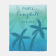 Couverture en toison de palmier tropical personnalisable en bleu aqua. Il existe des zones de texte personnalisables pour le nom de la famille et pour l'année où elle a été établie (anniversaire de mariage, par exemple).