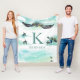 Couverture Polaire Aquarelle Tortue de mer Océan Nom du monogramme