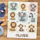 Cette adorable couverture en toison personnalisée présente une charmante collection de griffes sur le thème des animaux avec des lions, des zèbres, des éléphants et des singes. Il est conçu avec des lignes douces et arrondies et des arrière - plans pastel en vert menthe, rose bébé, bleu poudreux et jaune pâle.