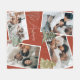 Une couverture en toison moderne et élégante en terre cuite de Noël de la famille boho avec quatre belles photos de votre famille dans un collage insolite agrémenté de pins aquarelles peints à la main. (Les photos de placement sont de Pexels photographiés par Ketut Subiyanto et pour échantillon seulement. Veuillez le remplacer par le vôtre.)