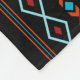 Motifs de style aztèque mélangés motif en bleu turquoise et bleu clair, rouge et rouge foncé sur un arrière - plan noir. H = motif horizontal le long de la couverture.