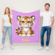 Cette couverture en toison avec un tigre mauve arrière - plan peut être personnalisée avec le nom de n'importe qui qui aime les tigres.