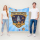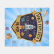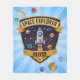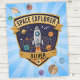 Cette couverture en molleton personnalisée ludique présente un badge audacieux d'explorateur spatial pour les futurs explorateurs. Au centre du badge se trouve une fusée de dessin animé ludique qui traverse l'espace avec des planètes en orbite autour d'elle.