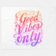 Ajoutez une touche de positivité à votre style quotidien avec ce badge à motif « Good Vibes Only ». Caractérisé par une calligraphie fluide et un dégradé chaud allant de l'orange au violet, ce bouton en pin combine une énergie joyeuse avec des fioritures décoratives qui lui donnent de la personnalité et du charme. Le mélange de couleurs vives se démarque magnifiquement sur les vestes, les sacs à dos, les sacs fourre-tout et les tableaux d'affichage en liège.