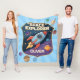 Cette couverture en polaire personnalisée ludique présente un badge audacieux d'explorateur spatial. Au centre du badge se trouve une fusée de dessin animé ludique qui traverse l'espace avec des planètes en orbite autour d'elle.