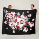 Cette couverture en toison de football de fille sportive présente une "explosion" de boules de football de taille variée et blanc et des formes de gris, marron et étoiles blanches sur un arrière - plan noir personnalisable - personnaliser avec le nom de l'athlète, monogramme et numéro de maillot - katz_d_zynes