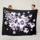 Cette jolie couverture en polaire de football féminin présente une "explosion" de balles de football violet et blanc de taille variée et des formes d'étoiles grises, violettes et blanches sur un arrière - plan noir personnalisable - les panneaux typiquement noirs des balles de football ont été recolorés violet - personnaliser avec le nom de l'athlète, monogramme et numéro de maillot - katz_d_zynes