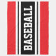 Cette conception sportive et sportive présente du texte en BASEBALL en gras à l'intérieur des bandes horizontales en noir et blanc contre des bandes extérieures en rouge vif. Le texte de cette conception peut être personnalisé.