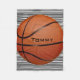 Basketball Design Fleece Blanket avec un basketball sur un arrière - plan rayé, avec personnalisation personnalisable et couleur arrière - plan.