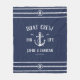 Bateau pour la vie ! Une couverture en toison d'ancrage moderne en bleu et blanc marine classique présentant vos noms et votre date entourée de détails de corde. Grand cadeau pour les amateurs de bateaux pour la Saint Valentin, les jeunes mariés, les mariages, les renouvellements de voeux, ou les anniversaires.