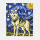 Un beau loup dans la nuit étoilée AI généré Van Gogh peinture