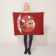 Jetez une couverture avec l'illustration d'un bébé hispanique/latin souriant mignon tenant un cadeau de Noël et portant un casquette du Père Noël ; dans un cercle rouge sur un arrière - plan rouge, un design de vacances de Noël avec un modèle texte modifiable pour votre nom ou message