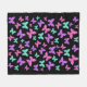 De belles images de papillons de bijoux numériques en rose vif, turquoise et violet volent à travers un arrière - plan noir dramatique à la surface de cette couverture. Coloré!
