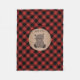 Une couverture en toison avec l'illustration d'un ours. L'Arrière - plan est noir et rouge bison plaid. Personnalisez le nom.