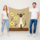 Couverture Polaire Blanche en fleur jaune et en chat siamois