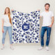 Cette couverture en toison à thème football couleurs équipe dispose d'un motif de boules de football de taille variée tourné de chaque côté sur un arrière - plan blanc personnalisable - les panneaux de ballons de football typiquement noirs ont été recolorés bleu - personnaliser avec le nom du joueur de football et le monogramme ou numéro de maillot - par katz_d_zynes
