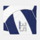 Cette couverture en toison à thème volleyball pour un garçon ou une fille dispose d'un volleyball bleu marine et blanc simple et abstrait surdimensionné qui couvre l'intégralité de la couverture - nom de l'athlète et numéro de maillot sont positionnés hors du centre, personnalisable en coordination bleu et gris - par katz_d_zynes