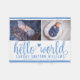 Cette couverture est une tenue parfaite pour votre nouveau-né. Il comporte des lettres "Hello World" avec le nom de votre nouveau bébé suivi de leur état de naissance. La couverture contient également deux images que vous pouvez avoir.