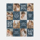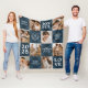 Celebrate the holidays with this elegant christmas themed blanket featuring blue plaid squares adorned with holiday wishes, family names, a festive family crest, and the year. The 8 photo collage template lets you insert special photos from the year, making this a meaningful keepsake for your home or a thoughtful holiday gift. Capture the warmth of the season in your living space.