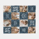 Couverture Polaire Blue Plaid Family Monogram 8 Photo Christmas