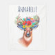 Belle aquarelle illustration d'un cerf aux bois ornés de fleurs. Il dispose d'un nom personnalisé en bleu profond au centre supérieur.