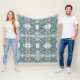 Couverture Polaire BOHO Aquarelle Florale Patchwork Motif Bleu Tan
