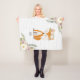 Une couverture en toison avec l'illustration d'un renard portant une couronne de fleur rose poussiéreuse sur un arrière - plan en bois gris avec des fleurs en haut à gauche et en bas à droite. Personnalisez le nom.