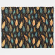 Hobo quitte le motif. Grands feuilles en sienne, marron, moutarde et bleu turquoise. Fermes et feuilles.
