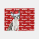 Un adorable Boston Terrier, prêt pour la saison des fêtes, a son nom modelé sur un arrière - plan rouge saisonnier. Modifiez la couleur de l'arrière - plan en choisissant simplement personnaliser.
