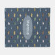 Ce modèle de couverture en toison bleu mignon et fantaisiste pour enfants présente un motif de transport en caricature bleu, avec voitures, camionnettes, trains, avions, crevettes, tracteurs et hélicoptères. Le design de monogramme peut être ajouté.